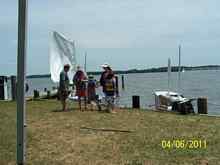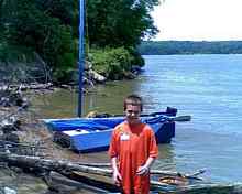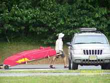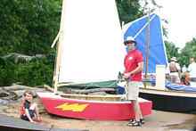 Larry Haff with his Glen-L Minuet "Sea Snail" (I nearly built one five years ago). Larry's trailer axle buckled as he arrived ... and again heading home ... "At least I got in some sailing". |