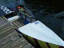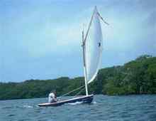Steve Deming’s 11’6” Wee Lassie schooner rigged sailing canoe. He actually took this thing out. Most of us thought it was a radio controlled boat. |