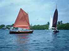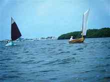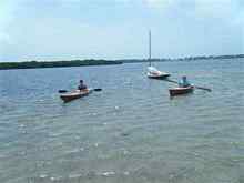 As usual, there are no pictures of me. I took a kayak this year to keep things simple. Howard had Chelsea the air cooled African Queen. My boy Steven was really zipping around in Laylah and Mike Wick came all the way from Delaware River way to sail the other Cortez melon, Yeehaw and had a ball. We have a date to race when he finishes his. I caught Ford trying the basket boat and paddled with Steve in his recycled junk kayak, it went pretty good. Crazy Steve had the sails up on his Wee Lassie schooner but he was nowhere to be found. The matched set of beautiful bright kayaks that Pat and Reese brought were the last two that our own Sam Geiger built. Frank and Laura were there with their homemade tri's and were really flying. There were millions of others there that I'm not going to name (cause I'm getting old and don't remember) like Rex, Kathy, Pat, Nancy, Richard, Red, Stan, Wally, Carol, well you get the picture. I did see the great Roger Allen as we were driving out but didn't talk to him, with events like this there's just too much going on to stand around and talk so I just jump in my boat and go out. See you in two weeks at Crystal River and May 7 at Cedar Key.