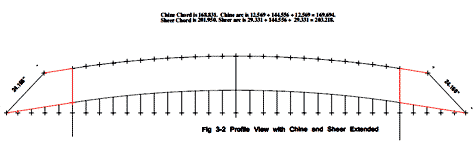 Article 3's formulas did not work until I finally noted that figure 3.1, 3.4 and 3.5 used a different boat as shown in figure 3.3. The example using figure 3.2 probably should explain that the chine also needs to be extended from station 24" using the same angle.