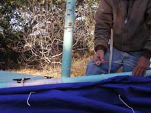 So, assuming a picture is worth a thousand words, I am including below a step by step pictorial guide to installing lazyjacks on a balanced lug.
