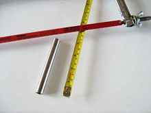 I had in my workshop oddments bin a piece of half inch od stainless tube. Ok, I had a half inch chuck drill so could make holes that size, and drilled one where the original was, plus two more at different heights so the ‘board could be set at different depths if required. When drilling I waggled the drill about to make the holes an easy fit, eased the corners with a little sandpaper and used a cheap childs water colour paintbrush to coat the inside of the holes with three coats of varnish, well thinned so it would soak into the wood. I coated the stainless tube with silicone car polish as a release agent and slid it back and forth through each hole to ensure that it would be an easy fit.
