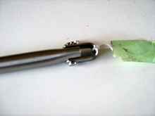 I got a shackle with split ring pin rather than screw pin, (From Duckworks magazines' boatbuilders supplies, RL-312-0) and drilled through the end of the tube about 5/16 “ in from the end, I used a drill that gave a fairly sloppy fit as the hole would distort when I flattened the pipe end in the vice, necessary as the shackle was only about 3/8 in across.