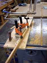 I used it to build my first boat but I soon discovered it was flawed and perhaps even dangerous. I couldn't get the clamp close to the cut and therefore the strip would vibrate when I started my cut. I tried some other clamps I had in the shop but it just was not a good setup. I needed something better.
