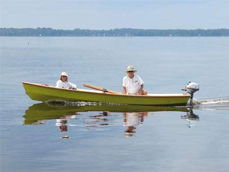The boat lines were based on 1985 Lissa plans by Joe Dobler from Duckwoks but with many simplifications and materials of the Otter 16 plans by Jacques Mertans. I added some of my own features drawn from my experience building a 7'3" version of the Dobler Pepita. The first launch was the rowing version. Later, we motored with a 2HP OB. A gunter sailing rig was completed in time to attend the Cedar Key small boat get together in May. I am still working out some of the details and improvements.