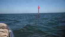 This marker was discovered several miles offshore in the Gulf of Mexico. Although kind of comforting, since there was nothing else visible on the horizon, I have no idea why it was there; it was not on my chart. |