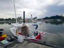 Esther in the kayak arrived first. She said she had good and bad news. The good news they were there to get us off. The bad news was I had to come too. The Rangers had decided it would be at least a week before the wind changed enough to alloy any water back into the Bay. They did want me out there by myself for a week. They would keep an eye on the boat and not let anyone clam it as salvage. Andrew had already packed his stuff to leave the boat and now I grabbed a few things myself. The boat was made ready, extra ties on the sail to keep it from blowing loose and the anchor thrown out. This latter really worried me because the anchor had never held in the grass, but there was no other choice but to hope it would hold this time.