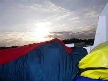 On the boarding ladder I washed as much mud off as I could. Back on board I found everything just as we had left it. A quick call to Jackie to let her know SCAMP and I were okay, and I made ready to set sail. It was getting dark fast but that big full moon was up so I hoped I could see enough to sail. My goal was Buoy Key and the Tin Can Channel. This was directly into the wind of course. I started tacking up wind with no center board and the rudder held all the way up by it's up haul so it would not drag. Thanks to the two skegs SCAMP made progress to windward but I had to use the lee oar to turn the bow through the wind when tacking. The moon was so bright SCAMP cast a shadow but I could no longer see the bottom. We got stuck yet again in the grass near the Southeast corner of Buoy key, just 100 yards from the Channel. My clothes were still wet so I took them off and got into a sleeping bag for yet another night, my fourth, on Florida Bay.