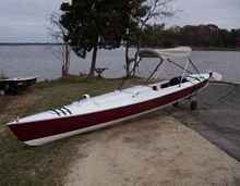 I had visions of exploring the Chesapeake Bay and its many tributaries free from the nagging concern of whether a suitable kayak campsite could be found before dark. Bad weather? Just pull into a sheltered cove, drop the anchor and snuggle into the bunk. There were practical downsides, however. At 20 ft. she was within 1 in. of the length of my garage and way too big to car top. And then the ominous phrase in the catalog:”skill level: intermediate”.