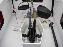 The “nope not me” stuff was easily taken care of by replacing the relatively complex shaft driven propeller system with a Hobie Mirage installation similar to what Chris Ostlind suggested in an earlier Duckworks article. Although the system is more prone to grounding damage, it makes up for that with lighter weight and the ability to perform maintenance while afloat. The only functional (and unavoidable I suppose) drawback is that vortices created by the fins cause an annoying thumping on the rudder in flat water conditions……and oh …..the drive units are expensive.