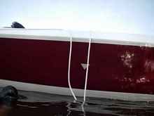 Figure 9 Man Overboard View : The two lines are the righting line/boarding ladder. The triangle is a reflective patch to find the ladder at night.