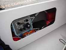 Figure 11 Top Side: The cabin air inlet scoop seems to be the most defining feature of this oversized kayak. The Dorade Box has so far worked great at providing ventilation while keeping water out.