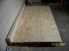 I made a butt-joint on the sheeting for both side panels using a 1 by 4 backing board and PL Premium glue. All joints were glued with PL Premium and screwed with galvanized steel screws. |