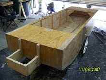 At this time, the battery was just sitting on the floor. I am also launching at “Galena Marina” which has no other boats being launched, so it's like my own personal boat ramp. It's so shallow here (about 5 inches) that nobody can launch (except for me, yeah!). After I installed the battery permanently, and added an electrical system, the boat was too heavy for me to load into my pickup, so I had to build a trailer. The Harbor Freight trailer was the right size and cost for this project.