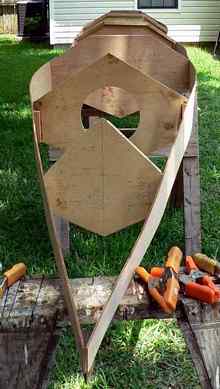 One change I settled on was in the thickness of the ply. Michalak recommended quarter inch (6 mm) ply. Because of projected hard use, I planned to fiberglass the hull inside and out where Michalak recommends fiberglassing only at the chines. To compensate for that, I reduced the ply thickness to 4 mm. Michalak has noted others have reduced the thickness on his other kayaks, in some cases to an eighth inch (3 mm). I’m hoping to keep the hull light enough so two people can carry it with ease, and one person can move it a short distance without undue distress. Our current two-person roto-molded 15 foot kayak weighs around 80 pounds and I’m hoping to better that.