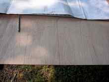 When the epoxy has set, the finished panels are taken to the back yard, ready for the boat to go 3D. A 20-foot panel of 4 mm ply is pretty limp stuff! |