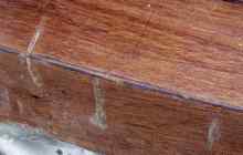 The center beam for the bow was installed and beveled for the deck. The beam for the stern compartment isn’t in the plans, but I decided to add it because the ply was thinner than specified. It’s held by fillets of thickened epoxy. |