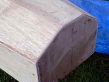 I split a 1x4 for the coaming. Because of the extreme curve of at the forward end of the cockpit, I split each side again. Above, the bottom of the port side is attached. |