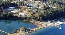 The waterfront shops of the Northwest School of Wooden Boatbuilding are visible in the lower left of this aerial photograph taken in January 2011, while the new Jeff Hammond Shop, the Large Craft Shop and the welding shops are visible in the upper left of the picture, half-way up the bluff overlooking the south end of Port Townsend Bay. |