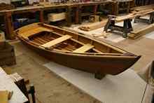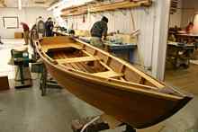 A 12-foot Monk skiff in the boatshop. |