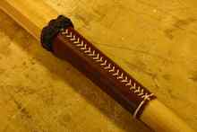 Spruce oars, correctly proportioned and leathered, come with the Monk Skiff. They are light and a joy to use. |