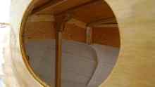 There were a couple of little surprises in this part of the project, frame #4 was not plumb (not really an issue when it’s just a rib, but can be when adding a wall) I had to leave a gap to later be filled so the wall would be vertical and cabin look proper. The cabin roof beam made of oak along with the compression post made for a very strong roof system along with the hatch frame. I have no issues with standing on this cabin. All that remains now is hatchway cutting, fillers, fillets, an eternity of sanding and finally painting and trim.