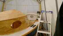 The aft wall was dry screwed in place and enough of the forward deck was cut to allow the front wall to be dry screwed in place.