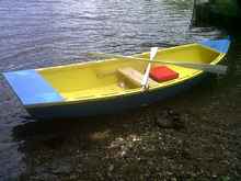 Looking back on the decisions I made as I built, there are a few I would do differently. Most importantly, I would have made the gunwales full depth. This would have allowed me to use top mount oarlock sockets and avoid having the sockets jut out beyond the gunwale threatening the topsides of any boat we might approach. I could have mounted sockets on the inwales, but that might not have given me the width necessary to carry the seven foot oars I made. I really like the stiffness the inwales added to the structure and I think I could have reduced the size of the rear deck without any difficulty. I also think I would like to have glassed the entire bottom. Lastly, if I had used ocoume plywood, lightweight oarlocks, and really paid attention to weight, the boat could probably be built at 65 lbs instead of the 80 lbs it now weighs. But, I like its workboat roots so ordinary plywood and galvanized oarlocks seem to match its personality.