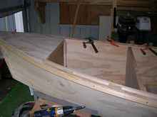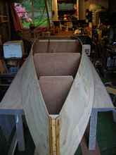 Gapped inwales and foredeck in progress. |