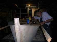 Cutting relief in the butt straps to allow the internal chine log to run the full length of the boat. |