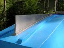 A retrofitted skeg gave the boat directional stability. You can see that the skeg is still wearing its Aluthane primer. |