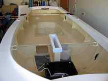 There is a lot of room in here, the side seats and forward seat have buoyancy tanks under them which can also be used for dry stowage. He's done a nice job, there is a little finishing work still to do before the paintbrush comes out but you can tell she'll be something to be proud of. |