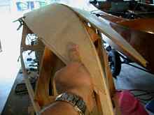 Below you can clearly see the bottom plywood overhanging the chine, and the gap over the keelson created by using a completely straight edge on the bottom piece there.