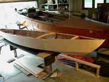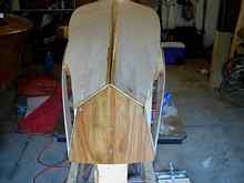 View from the stern with bottom glued on. Screws were just clamps, later removed and plugged. |