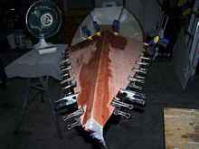 the frames and bulkheads, nailed and glued with thickened