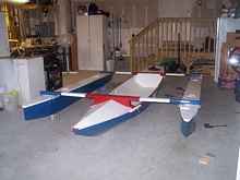 leeboard, cross braces, floats and the mast, boom and sail. Each