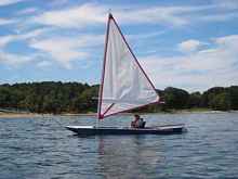 sail, rudder and leeboard. The boat can be disassembled and transported