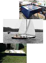 Top: The blue hull and tan interior are no accident. Michael wanted the Ultra-Pram to mimic the color scheme of his sailboat, pictured below. He has been working on this boat for some time, retrofitting it and refinishing it to new status. As they both serve a different purpose, each will play a role in Michael's boating life for some time to come.