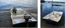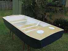 Bottom: The finished boat is 8 feet long and 4 feet wide, with 18 inch side panels. The light interior gives the boat a spacious feel, and room for 4 people is evident. |