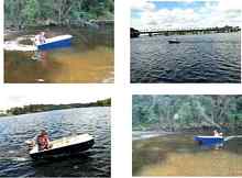 I drove to the nearby Shoalhaven River where there is a boat launching ramp with a sandy beach beside it. Assembling the UltraPram I had some interesting looks. The motor was sitting a little high but the only way to fix that was to cut down the top of the motor mount; and once I was in the stern the propeller was just fully submerged so I have not bothered to cut down the mount. With the oar blocks, clamps and oars in the UltraPram, the motor fitted and camera at the ready, I pushed off a little way from the wharf to see how it felt. Very stable and only drawing about 3-4cm of water. Most importantly no leaks visible!