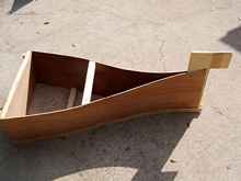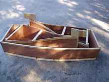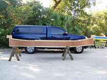 Once before, Ken Simpson, another pure genius, inspired me to build Ruby a three-part canoe that has served me well. From this gem an idea was formed to build a larger take-apart canoe that would still fit in a small space for transport. This craft would have a six foot center and curved matching ends with Viking dog heads on each bow to ward off evil stink pots. This was easier said than done, how far could Luan plywood and thin chines bend?