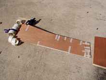 Ken Simpson’s ez-2canoe gives great ideas on the use of light plywood and Titebond III glue; he inspired me to build with 1 x 2 furring strips and Luan plywood. I first made up the end panels of all the sections out of the 1 x 2’s sandwiched between Luan. I then formed the angled joining strips. Now I was ready to made up the middle section by bending some Luan sides around a temporary center frame and attaching the end pieces. I angle cut my furring strips to form chines and gunnels then glued on a bottom. I put some floor bracing inside and removed the temporary center frame. A mid-brace was added for strength and ease of handling. This mid-section is the work area with the two end sections built light and not reinforced. The mid-section settled at 66 inches long, 32 inches at the widest bending to 23 inches at the two ends. The two end sections proved to be the inspiration of the whole Viking thing. Each section is 22 inches at their butt end and tapering to a long 2-inch snout. This fine bowhead was a piece of 1 x 10 shelving between the two Luan sides of 48 inches. The sides were then subjected to extreme bending outward to meet the end piece. The thin chines and gunnels on each end piece spent three days in a swimming pool before taking their twists.