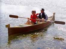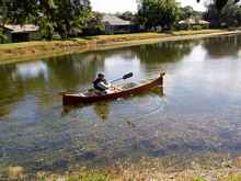 In the water the crazy Viking war canoe moved right along for a flat bottomed boat. My former first mate rejoined my crew upon seeing the beauty of this fine craft. Together we weigh in a little shy of 300 pounds and set both the bow and stern in the water with plenty of freeboard. There is little or no wake following the pointy stern.