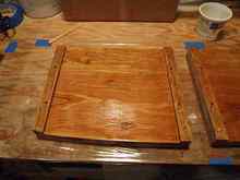 The daggerboard trunk for Nymph was an interesting design project, though it was a bit traumatic cutting a hole in the bottom of a perfectly good boat. I took the board dimensions from boats with similar sail area. All else being equal, the ratio of sail area to daggerboard area should be roughly constant, and somehow related to the density of the two fluids. I've rigged enough windsurfing sails and chosen appropriate fin sizes for various wind conditions that my intuitions are reasonably good. I've also taught engineering for half my adult life, and based on exams I've graded and some of the boats I've seen, it appears that "To err is human - to really foul things up requires an equation and a calculator." I made some initial calculations, sketched something that looked about right, and then put the daggerboard slot where it had to be - just forward of the midship frame. I wasn't sure if I'd gotten it right until I finished the experiment. After a summer of sailing in all conditions from ghosting to overpowered, I can confirm that the daggerboard slot is in the right place. One thing I'd change next time is that I made the slot too narrow - a half inch - relishing the woodworking and epoxy precision that required. That constrains the shape and strength of the daggerboard. I recommend 3/4" or even an inch wide on a boat this size.