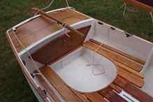 Small boats like Herreshoff 12s have historically been "boy's boats" - they are supposed to be easy to sail. That is fine, but what about those of us who want something small and technical, a craft that rewards our growing skills and punishes our mistakes? A technical sailboat needs a way to make quick, small adjustments to crew weight relative to the centerline - side to side and fore and aft. A good way to do that is a footwell ringed by a seat. There's not much room for a footwell in a Nymph, but there is enough.