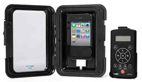 IP65 rated for use in wet and dusty environments, the Digital Media Locker has a built-in amplifier (72x4 @ 2 ohms, 47x4 @ 4 ohms) and pre-amp outputs to connect external amplifiers. A radio frequency two-way remote controls music functions while the player stays dry inside the locker. Flush mounts easily. Compatible with iPod, MP3, US and Euro FM radios. MSRP US $288.