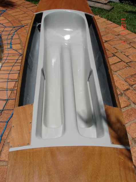 - 3/8" marine fir ply for permanent ribs, daggerboard trunk sides, bracing under foredeck where the mast passes through