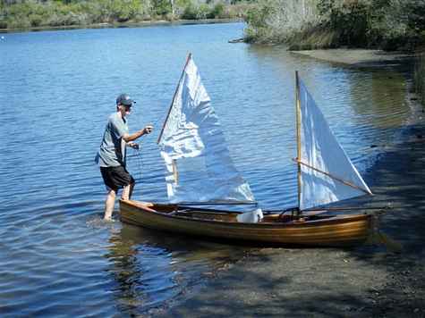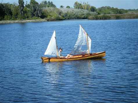 I've still gat a ways to go in getting the sheet leads right, and fine tuning the homemade Poly Tarp genoa. It is also obvious not only are some cleats not located properly, but some additional jam cleats are needs. But all the same, on this outing the GPS indicated a top speed of 4.8 knots, and she was able to tack through 95 degrees.