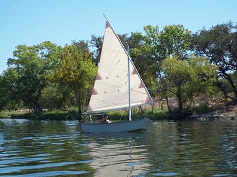 Went to the Centex messabout this weekend at Inks Lake. One of the boats there was Lance Turner's new John Welsford version of a Puddle Duck. Lance is a meticulous craftsman; he's got the classiest Puddle Duck ever built. Sail looked beautiful too, tan-colored lateen. John Welsford was also at the messabout, and was suitably impressed.