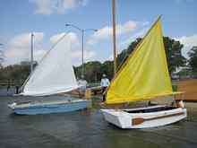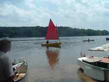 I put a little video of our test sail up. Fair warning: it's pretty boring unless you happen to be interested in cartop catamarans. I sail along and natter about the boat, and that's about it.